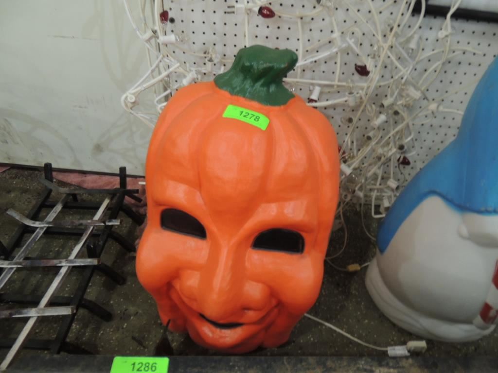 PLASTIC LIGHT UP PUMPKIN JACK O LANTERN, LIGHT UP DISPLAY PUMPKIN, HOLIDAY DECOR, OUTDOOR DECORE AS SHOWN SEE PHOTO FOR MORE DETAILS