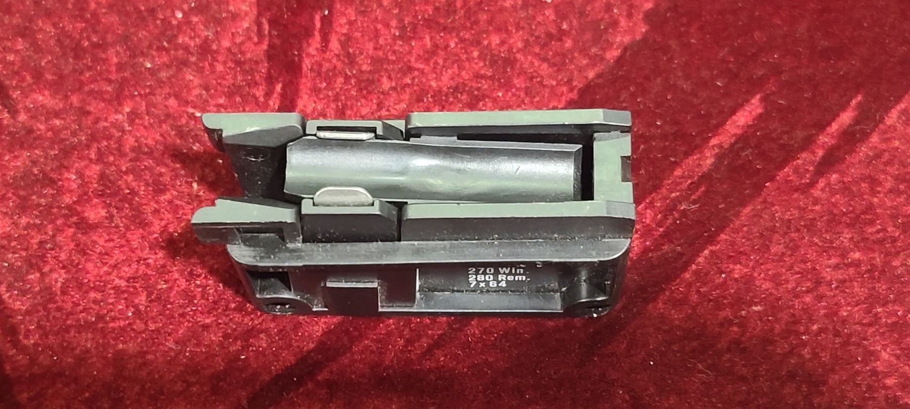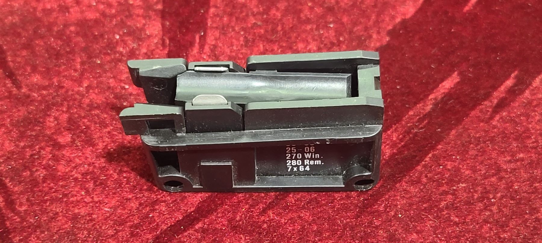 PLASTIC MAGAZINE FOR UNKOWN FIREARM - MAGAZINE INDICATES CALIBRES" 30-03, 25-06, .270, 280 AND 7 X 64