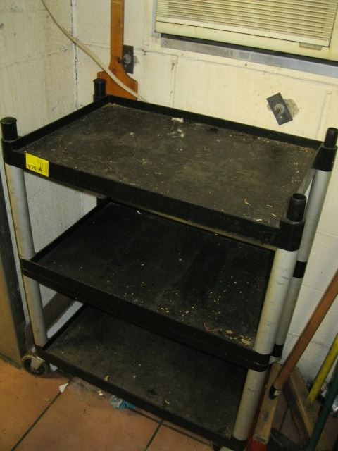 PLASTIC SHELF UNIT ON CASTERS