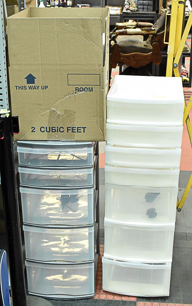 PLASTIC STORAGE CART & DRAWER BINS- ASSORTED