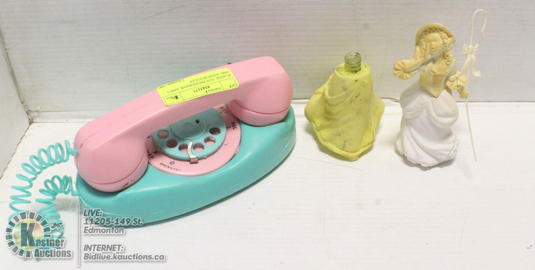 PLASTIC TOY PHONE/BANK AND 2 GIRL AVON BOTTLES