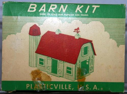 PLASTICVILLE BARN. RED WALLS AND TRIM, WHITE ROOF