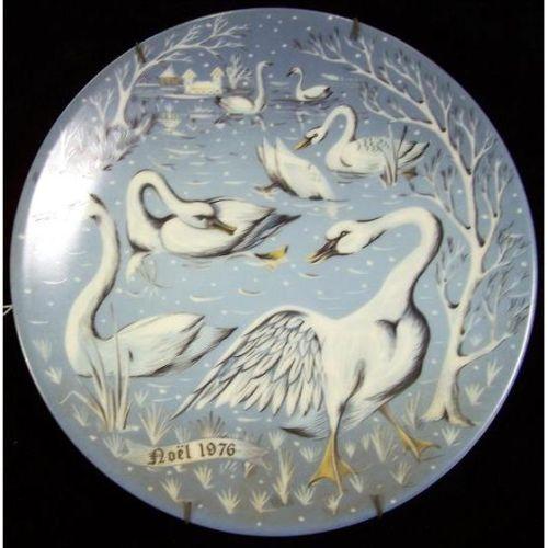 PLATE - HAVILAND "LIMOGES" SEVEN SWANS PLATE - FRANCE - SIGNED