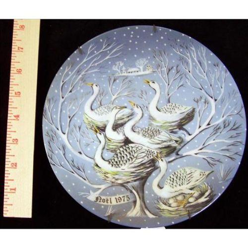 PLATE - HAVILAND "LIMOGES" SIX GEESE A LAMING - FRANCE - SIGNED