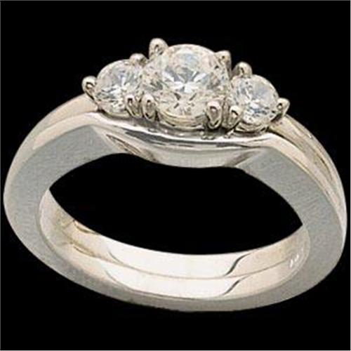 PLATINUM Engagement ring featuring a round, Brilliant Cut Diamond with a smaller round Diamond each side. These 3 Diamonds are well matched, 'SI' Clarity and Fine 'H' color, and the Diamond Total Weight= .50 CARATS! The matching Wedding Band is PLATINUM as well. This set is a size 6 and I can resize it for you, It is in Pristine condition.