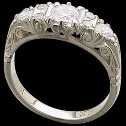 This Antique Style Diamond Anniversary and Wedding Band is Solid PLATINUM. It features 3 Round Diamonds set across the top with 4 smaller Diamonds as accent. The Diamond Total Weight = .75 CARATS! This Platinum Band is a Size 6 and I can resize it for you. It is in Mint condition!