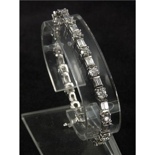BRACELET: Luminous platinum and round and baguette cut diamond bracelet. Appraisal included.