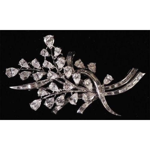 PLATINUM AND DIAMOND BROACH 67mm long, composed of 25 stones approx. 6cts total weight, PACKING/SHIPPING within continental U.S. excluding insurance (which is required) will be handled by Fairfield Auction for $20,