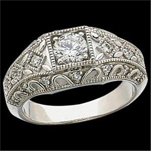 This PLATINUM Antique Style Engagement Ring is set with a magnificent round Diamond = .50 CARATS! This Diamond is a FINE 'F' Color and FINE 'SI1' Clarity - and - it comes with a Certificate from the GIA (Gemological Institute of America) This Platinum Engagement ring is set with 10 smaller Diamonds surrounding and accenting the center. The Diamond Total Weight = .70 CARATS! The Platinum workmanship is outstanding! It is priced FAR below Retail.