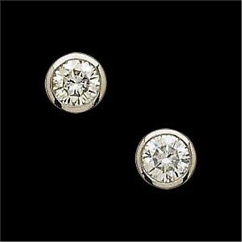 PLATINUM Earrings, each featuring a beautiful round Diamond in a Platinum bezel setting. (The bezel setting has no prongs at all) The Diamonds are well matched, 'SI2' Clarity and Fine 'H' Color and they are very well cut. The Diamond Total Weight = .50 CARATS! These Platinum Earrings have studs style backs for comfort and security. They are in Brand New condition.