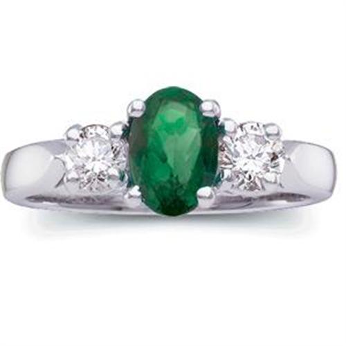 This Platinum ring features a very beautiful Genuine Oval Emerald = ONE CARAT! There is a sparkling Diamond set either side, and the Diamond Total Weight = .40 CARATS! This Platinum ring can also be worn as an Emerald and Diamond Engagement ring. It is in Pristine condition and I highly recommend it to you.