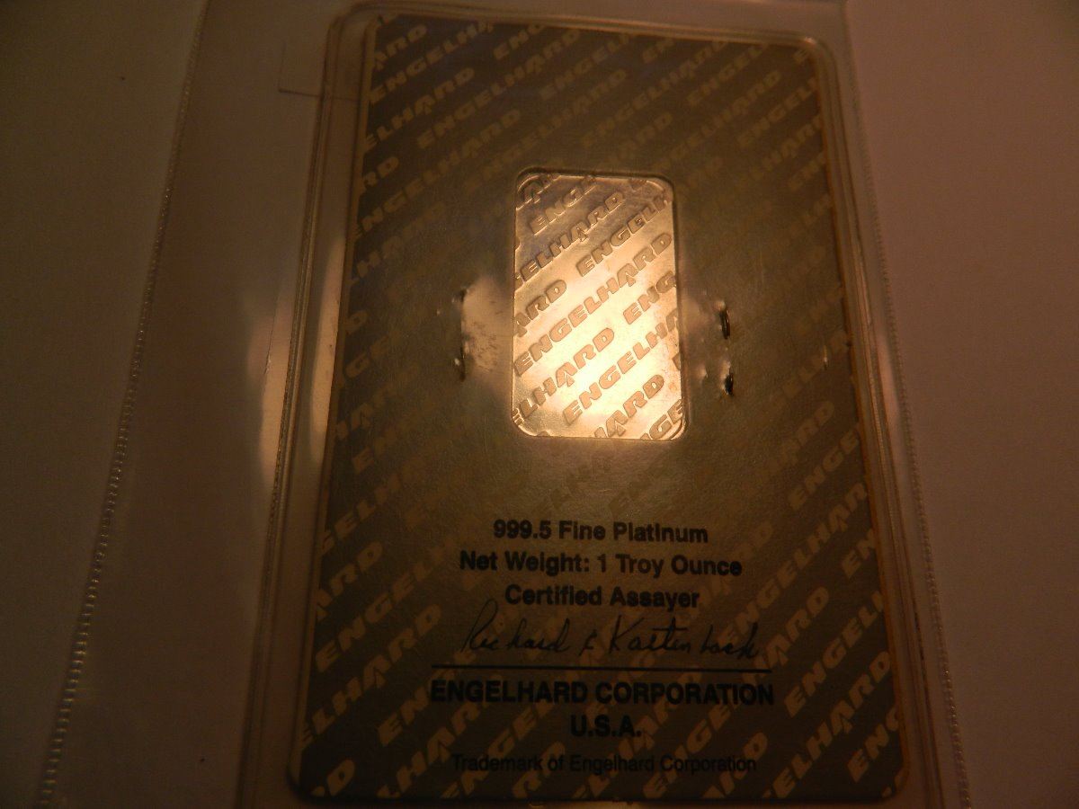 PLATINUM Engelhard One Ounce .9995 fine Platinum Ingot in Assay.