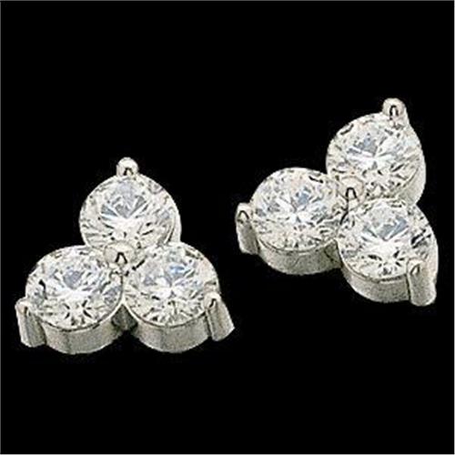 PLATINUM Earrings, each featuring a cluster of 3 Round DIAMONDS. The Diamonds are 'WHITE and SPARKLING' and their Total Weight= .90 CARATS! They are all well matched Diamonds, 'SI2' Clarity and 'H' Color. This pair of Platinum and Diamond Earrings have stud style backs for pierced ears.