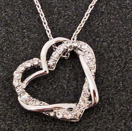 PLATINUM PLATED AUSTRIAN CRYSTAL HEART PENDANT & CHAIN
