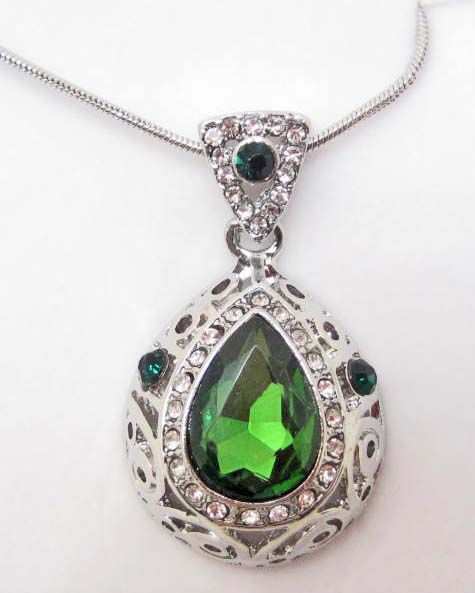 Tear drop shaped pendant hang down 2-1/2" Adjustable length chain measures approx 16-18" long.