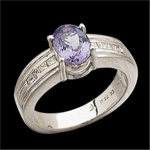 PLATINUM ring featuring a Magnificent Genuine Oval TANZANITE = 1.50 CARATS! There are 4 Princess Cut Diamonds set each side as accent, and the Diamond Total Weight = .32 CARATS! This ring is a size 6 and I can resize it for you.