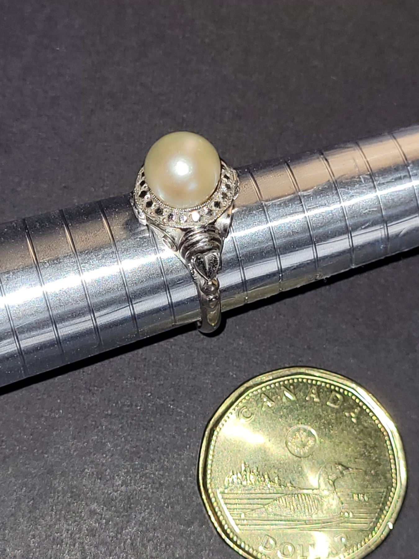 PLATINUM RINGWITH AKOYA PEARL. PLATINUM RING! HAS A 10MM AKOYA PEARL, VERY BRILLIAN NEVER TARNISH SHINE! 5.6 GRAMS OF PLATINUM