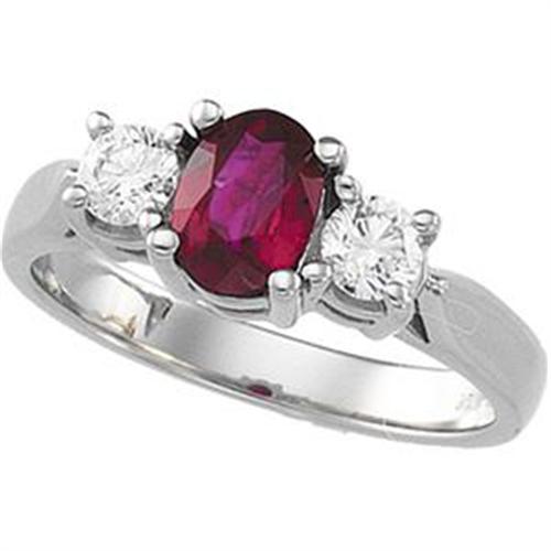 This Platinum ring features a very beautiful Genuine Oval RUBY = ONE CARAT! There is a sparkling Diamond set either side, and the Diamond Total Weight = .40 CARATS! This Platinum ring can also be worn as a Ruby and Diamond Engagement ring. It is in Pristine condition and I highly recommend it to you.