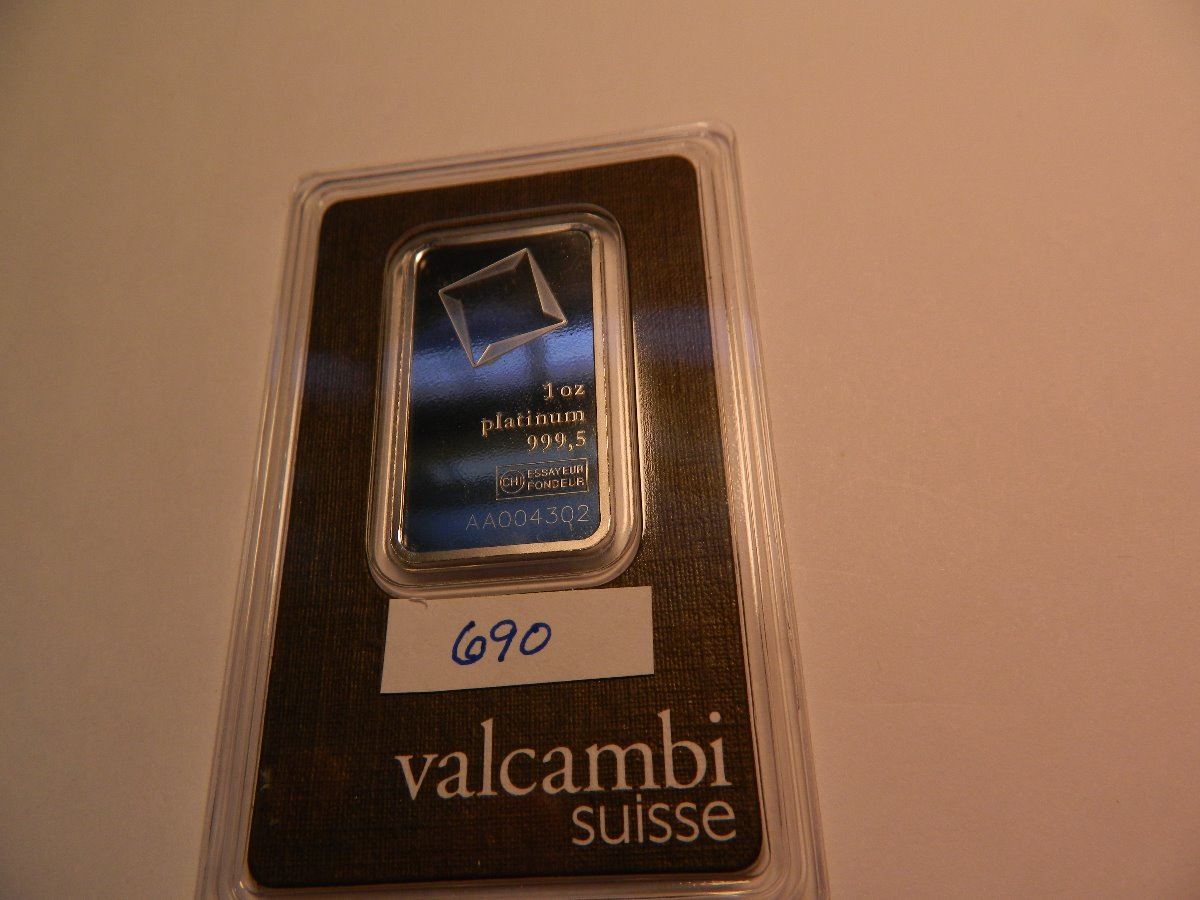 PLATINUM Valcambi Suisse One Ounce .9995 fine Platinum Ingot in Assay.