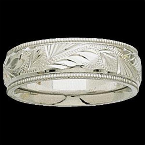 Platinum Comfort Fit Wedding Band with an Etched Design, Size 7.