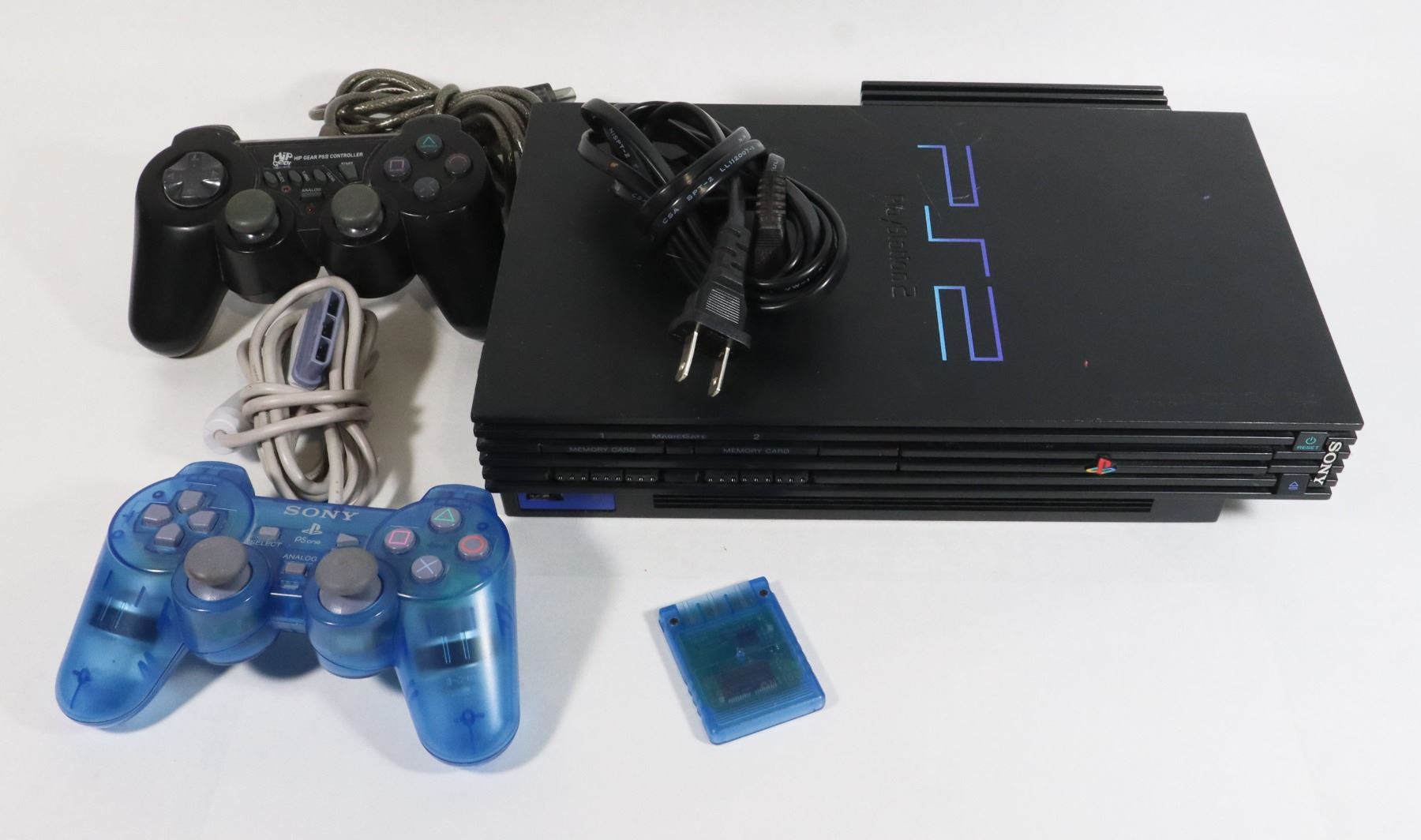 TWO CONTROLLERS. ONE CONTROLLER IS 3RD PARTY. NO AV CABLE. UNTESTED, SOLD AS IS