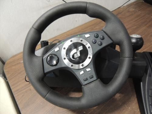 PLAYSTATION COMPATIBLE LOGITECH GRAND TURISMO STEERING & PEDAL SYSTEM. USB ADAPTER. AS SHOWN. VIEW PICTURE FOR DETAIL.