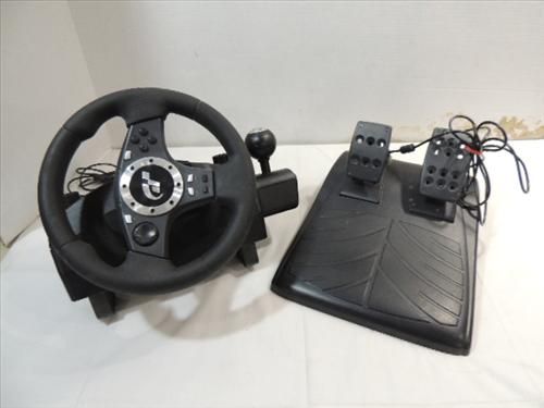 PLAYSTATION COMPATIBLE LOGITECH GRAND TURISMO STEERING & PEDAL SYSTEM. USB ADAPTER. AS SHOWN. VIEW PICTURE FOR DETAIL.