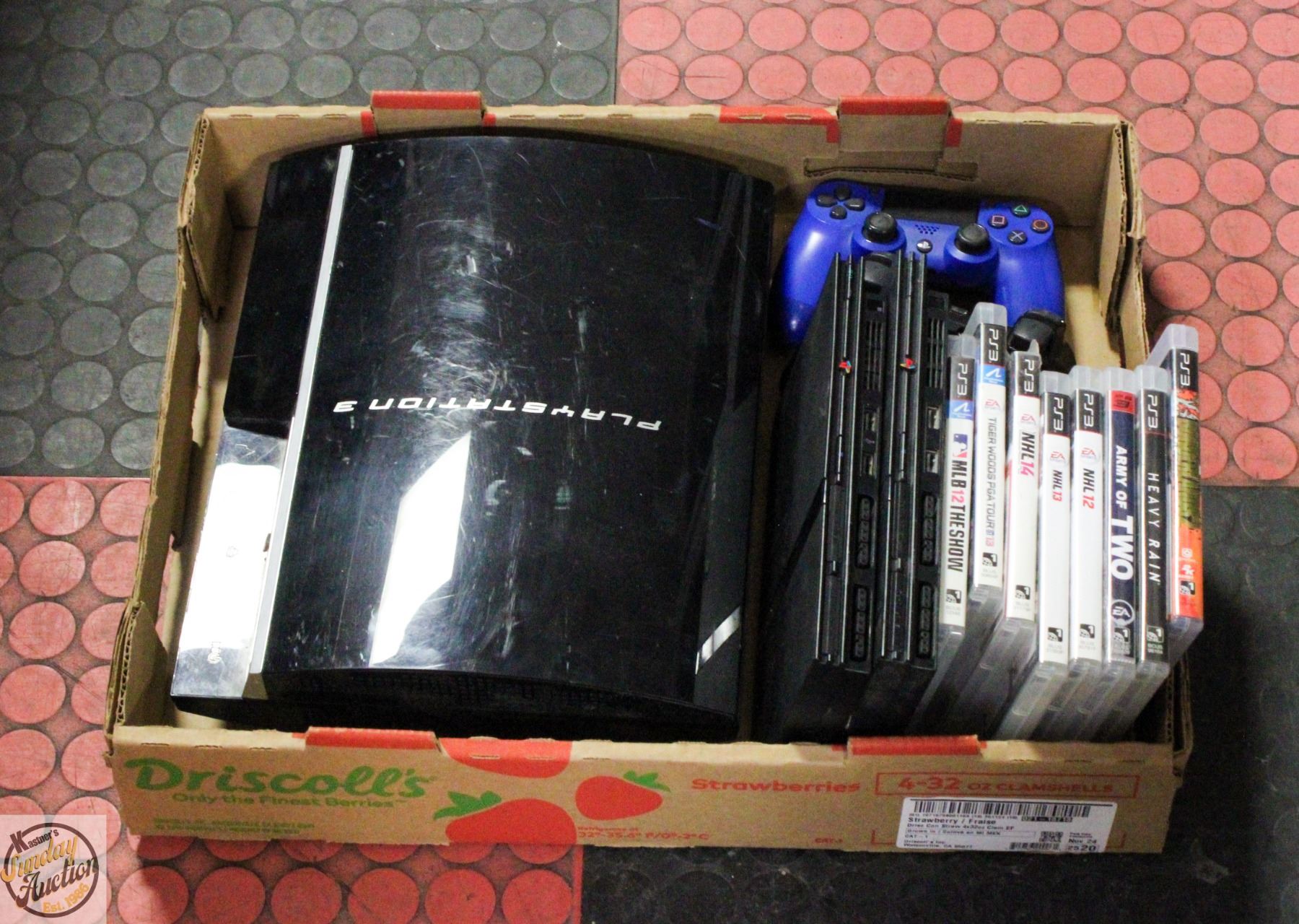 PLAYSTATION CONSOLE LOT W/GAMES, CONSOLES +