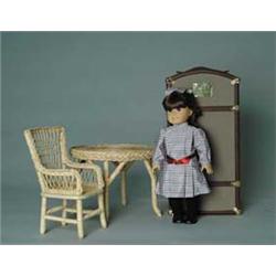 Lot 449: PLEASANT CO. AMERICAN GIRL "SAMANTHA" W/ ACCESS. Lot includes a variety of clothes, wicker table, stroller, service setting, brass bed, cloth covered dome trunk, books, and accessories. SIZE: 18" t. CONDITION: Like new, in boxes. 1-1217-775