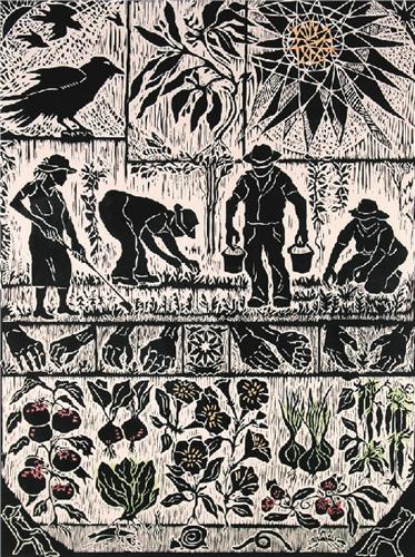 <b>Medium: </b>Hand-coloured woodcut on paper ; Ed. #9/20