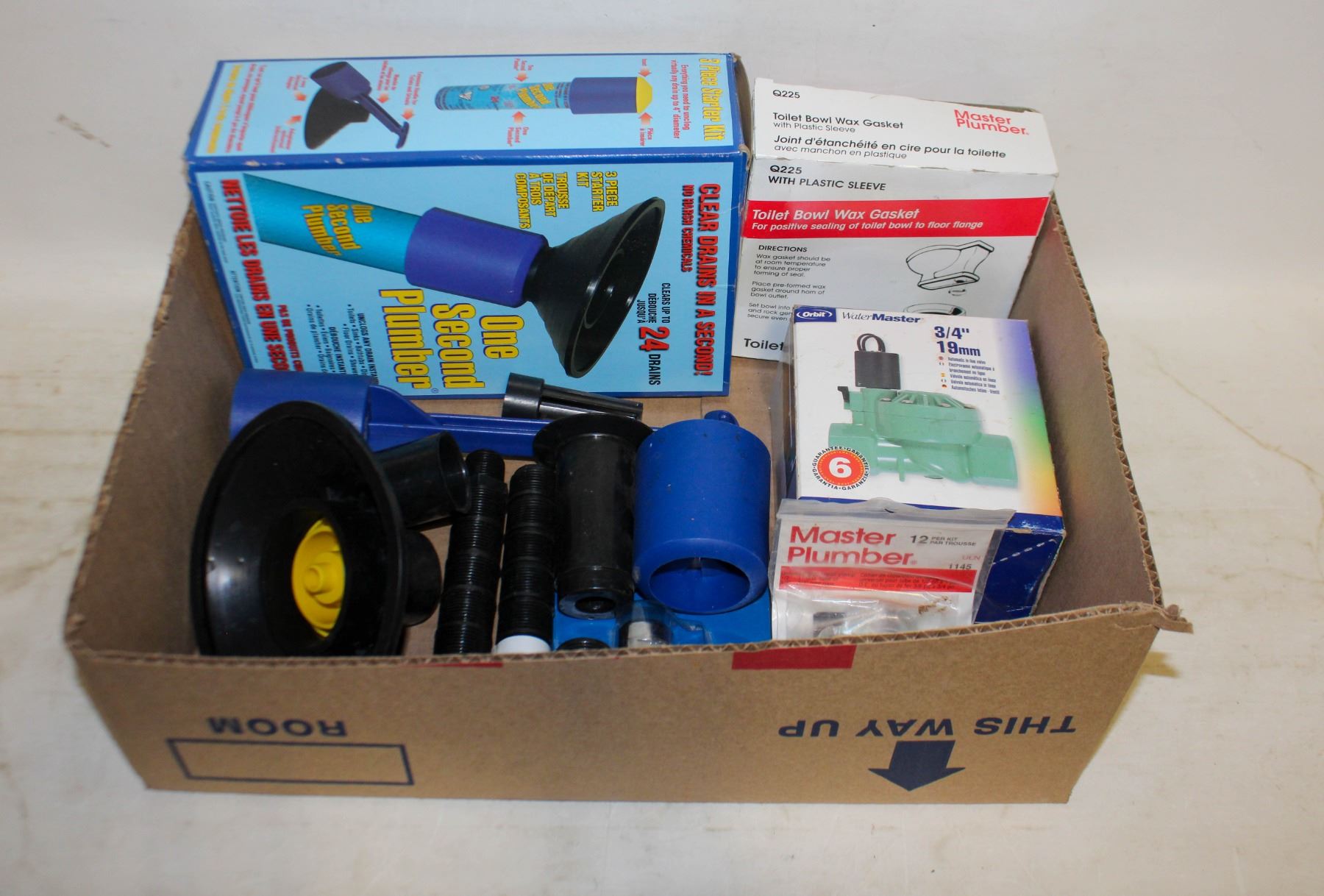 PLUMBING SUPPLIES- BOX LOT ASSORTED