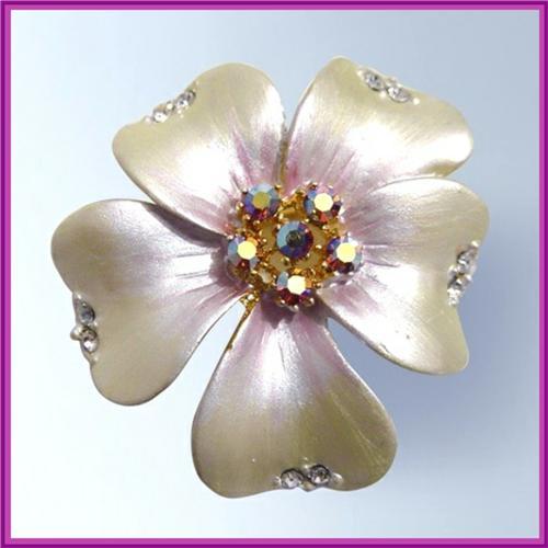 PLUMERIA PIN BROOCH 24K GOLD CRYSTAL SWAROVSKI