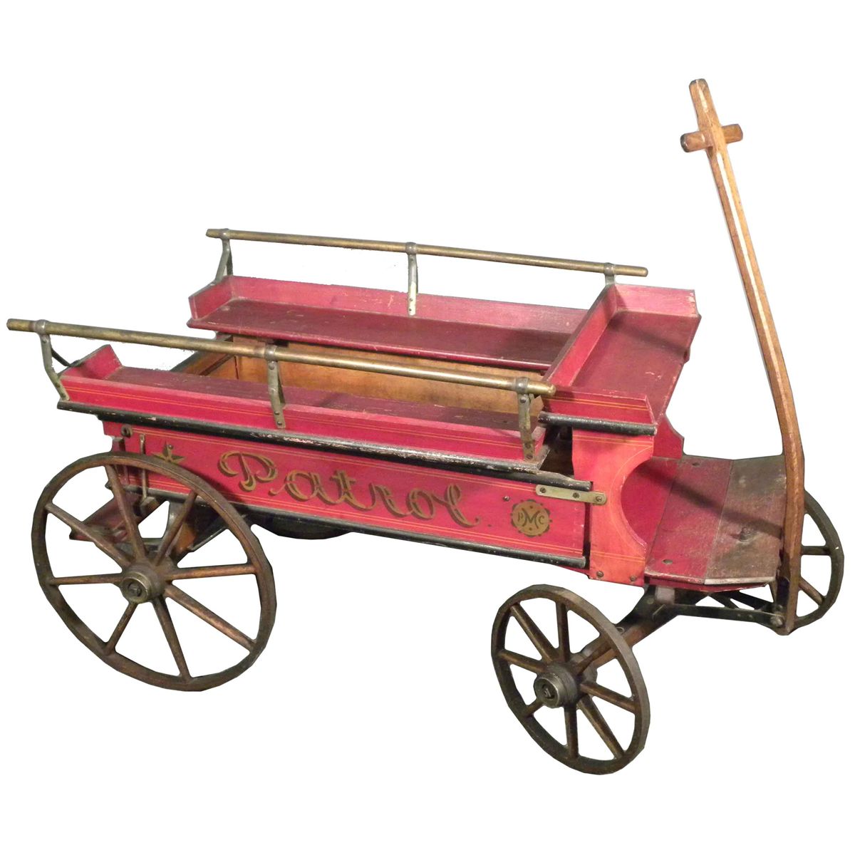 PMC Fire Patrol Wagon. All wood construction with steel wheels. Excellent original condition. 48 inches long w/o tongue