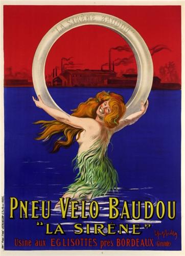 CAPPIELLO. PNEU VELO BAUDOU "LA SIRENE". (1920 CA.). 157,5x114,5cm. (62x45,2in.). Litografía. A-. Entelado.