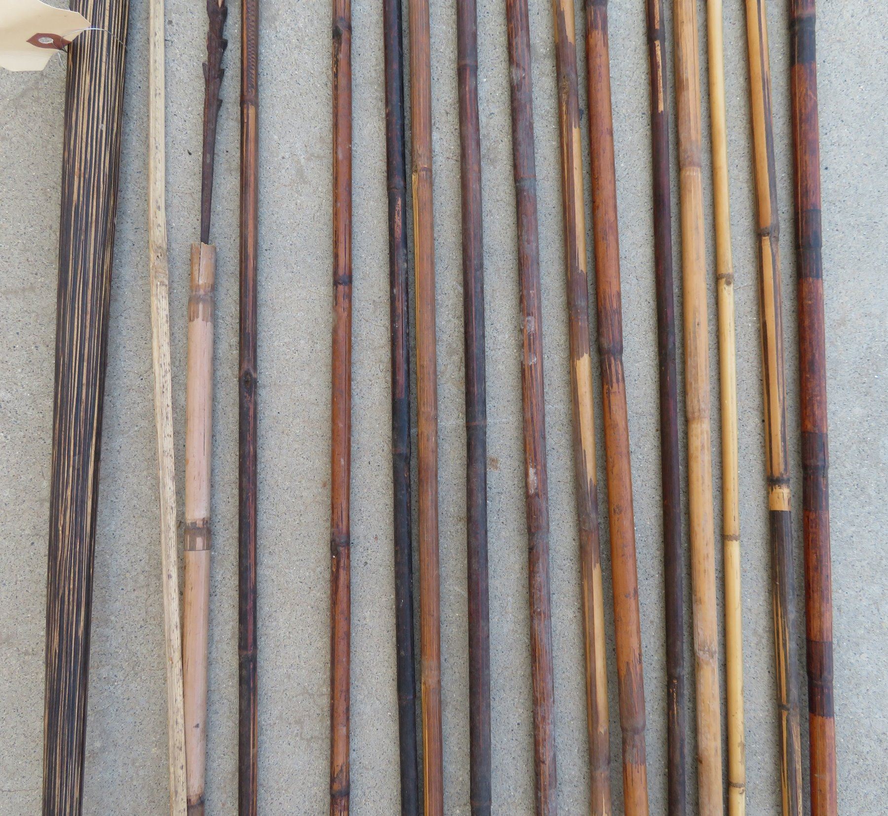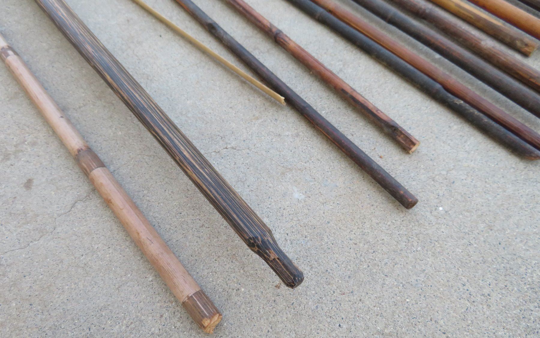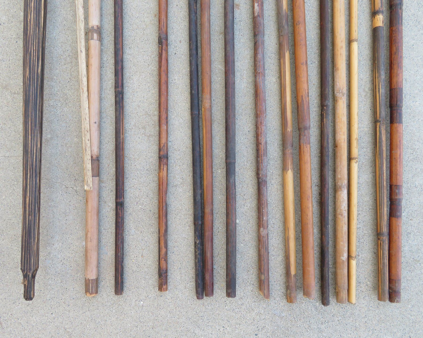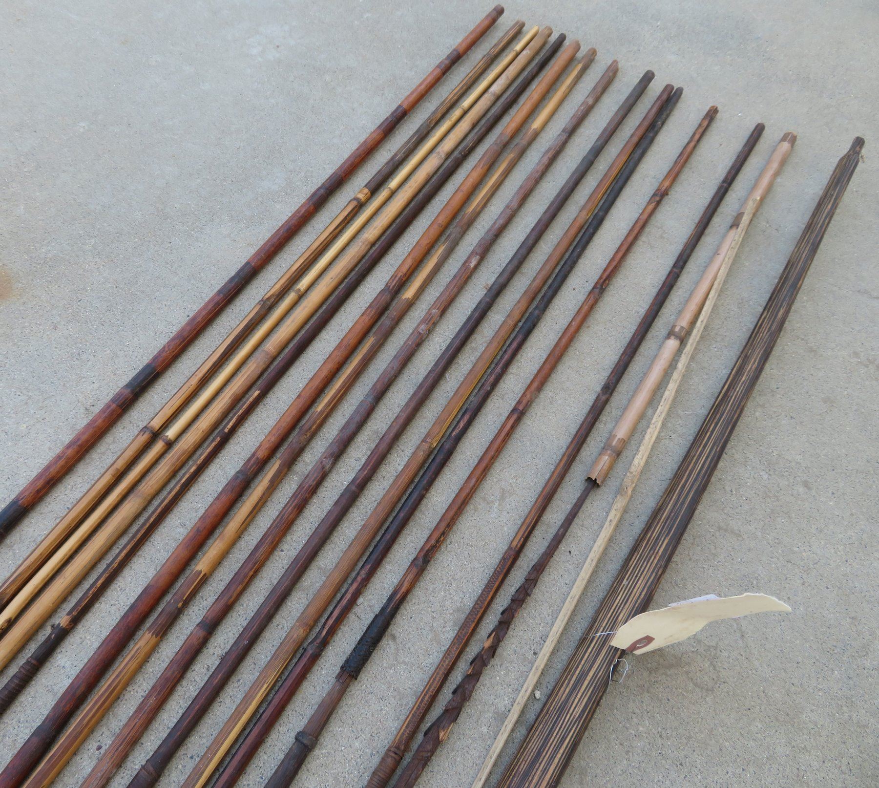 PNG Bow & Arrow Set, c. 1940s. Made of bamboo and wood, the longest item measures 62". Papua New Guinea. Used in tribal warfare, serrated and barbed points, fancy stitchwork. Condition: As found, see images. Shipping: $65.00 USA estimate only, w/insurance and signature, due to length.