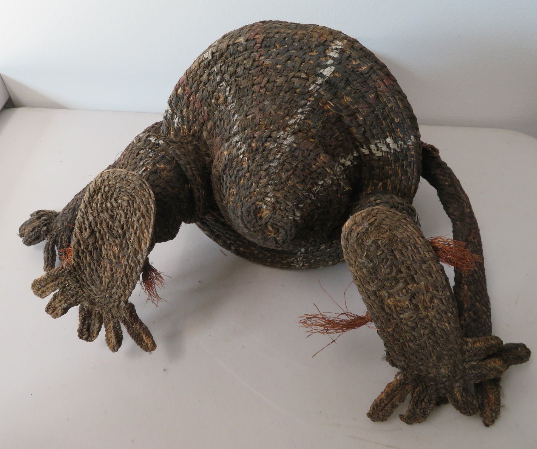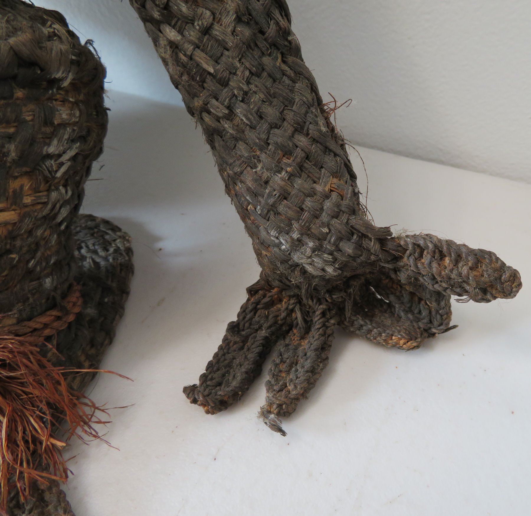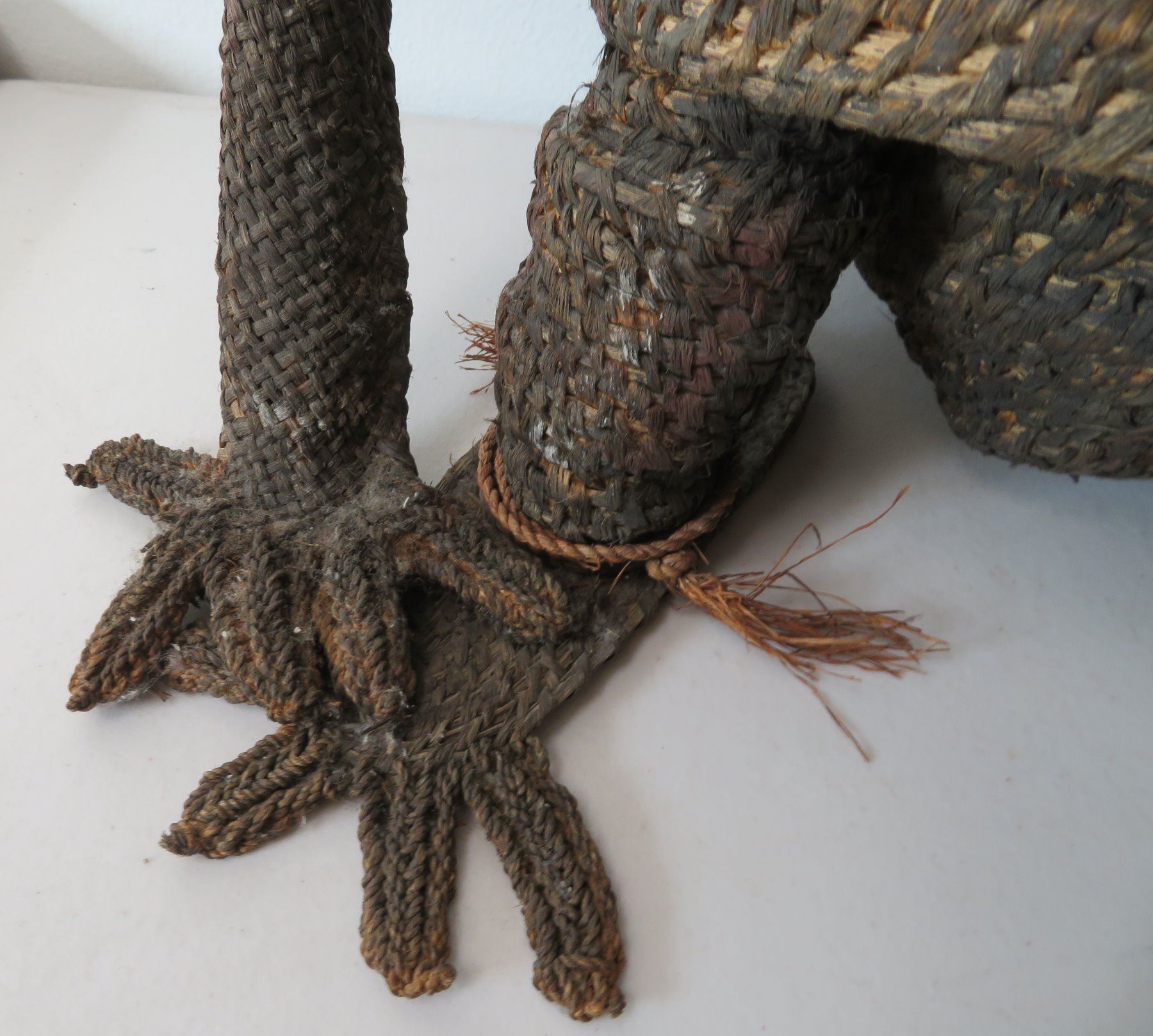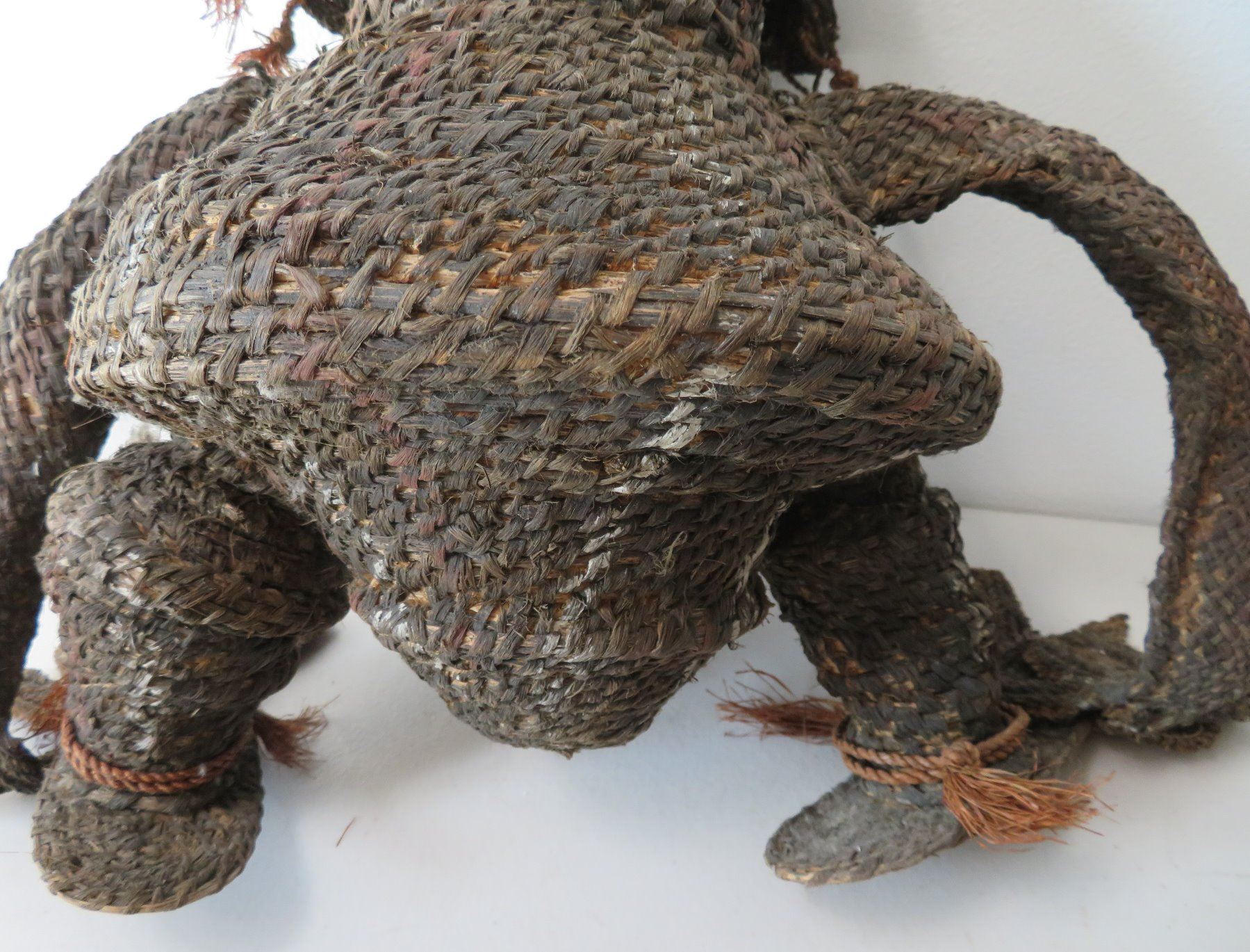 PNG Human Basketry Figure, c. 1920s. Made of fiber and paint, the item measures 16" x 16" x 10". Papua New Guinea. Seldom seen item. Condition: Very flexible, see images. Shipping: $37.50 w/insurance and signature, due to size and value.