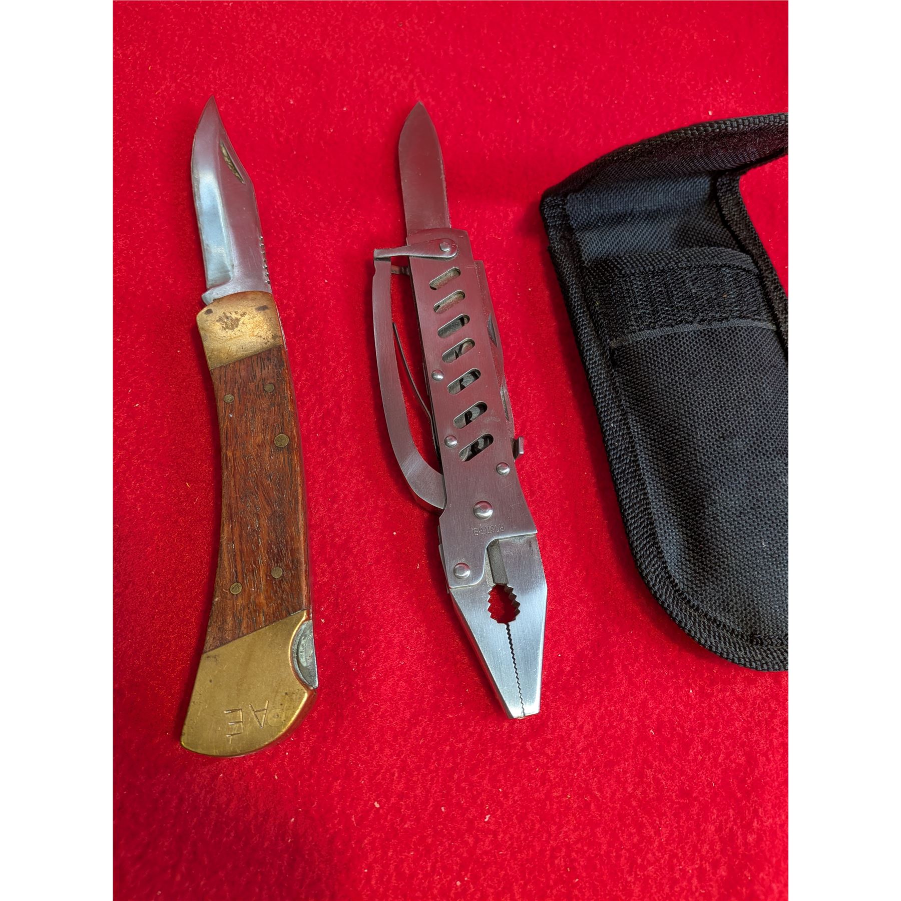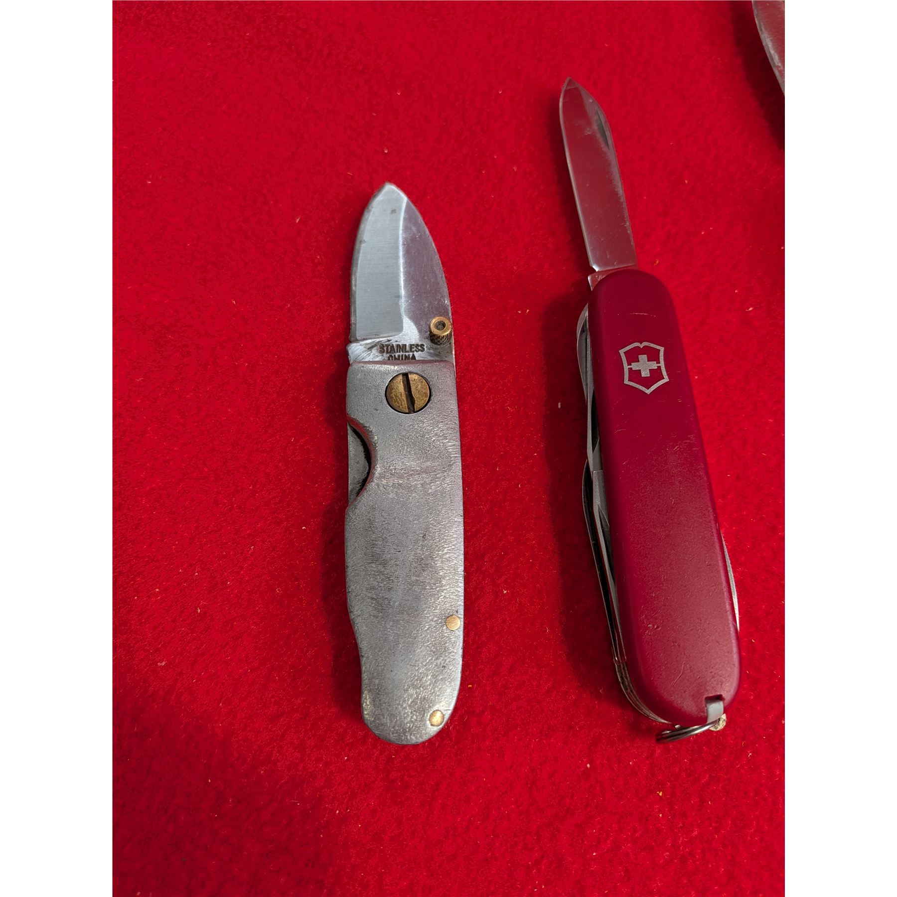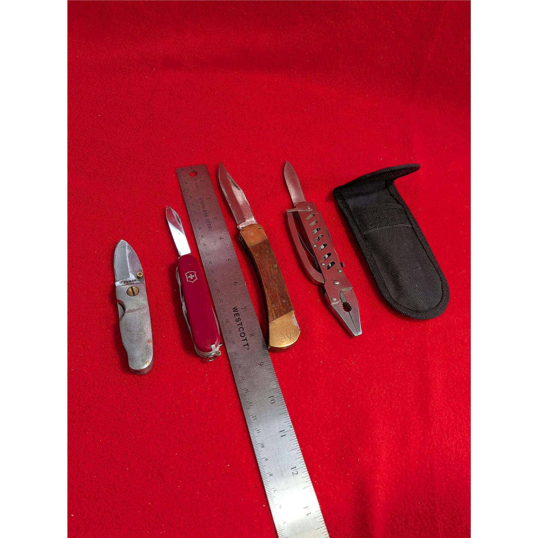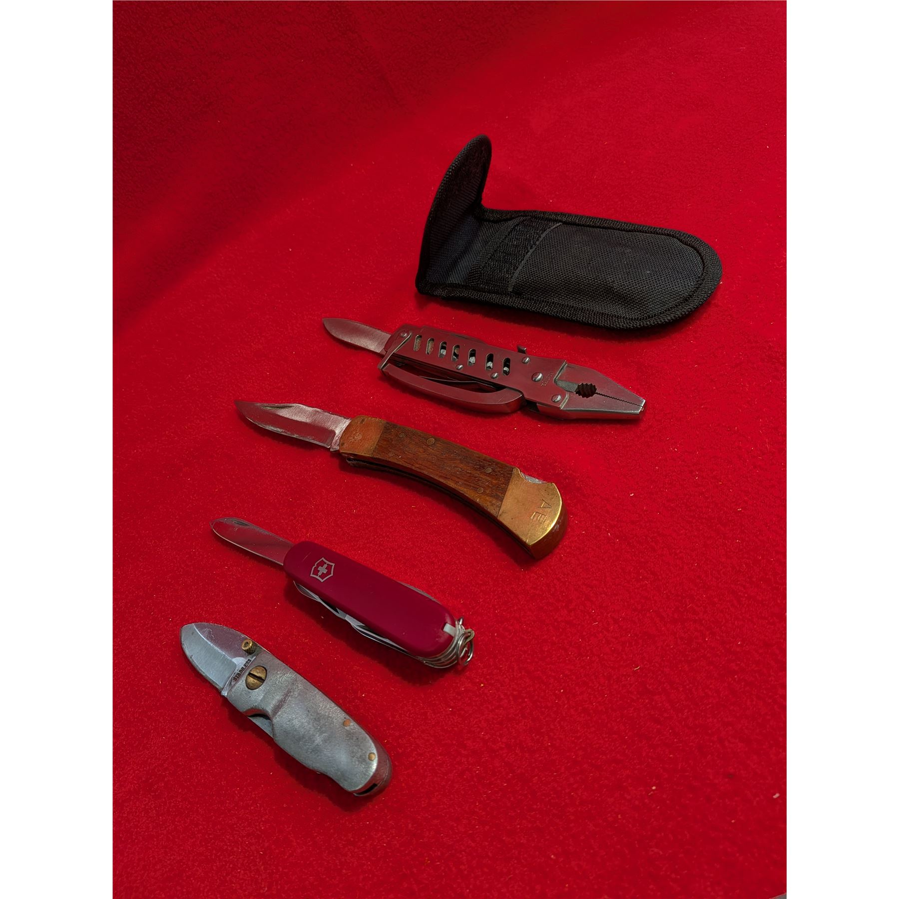 Four pocket knives including two multi-tool one being a Swiss VICTORINOX