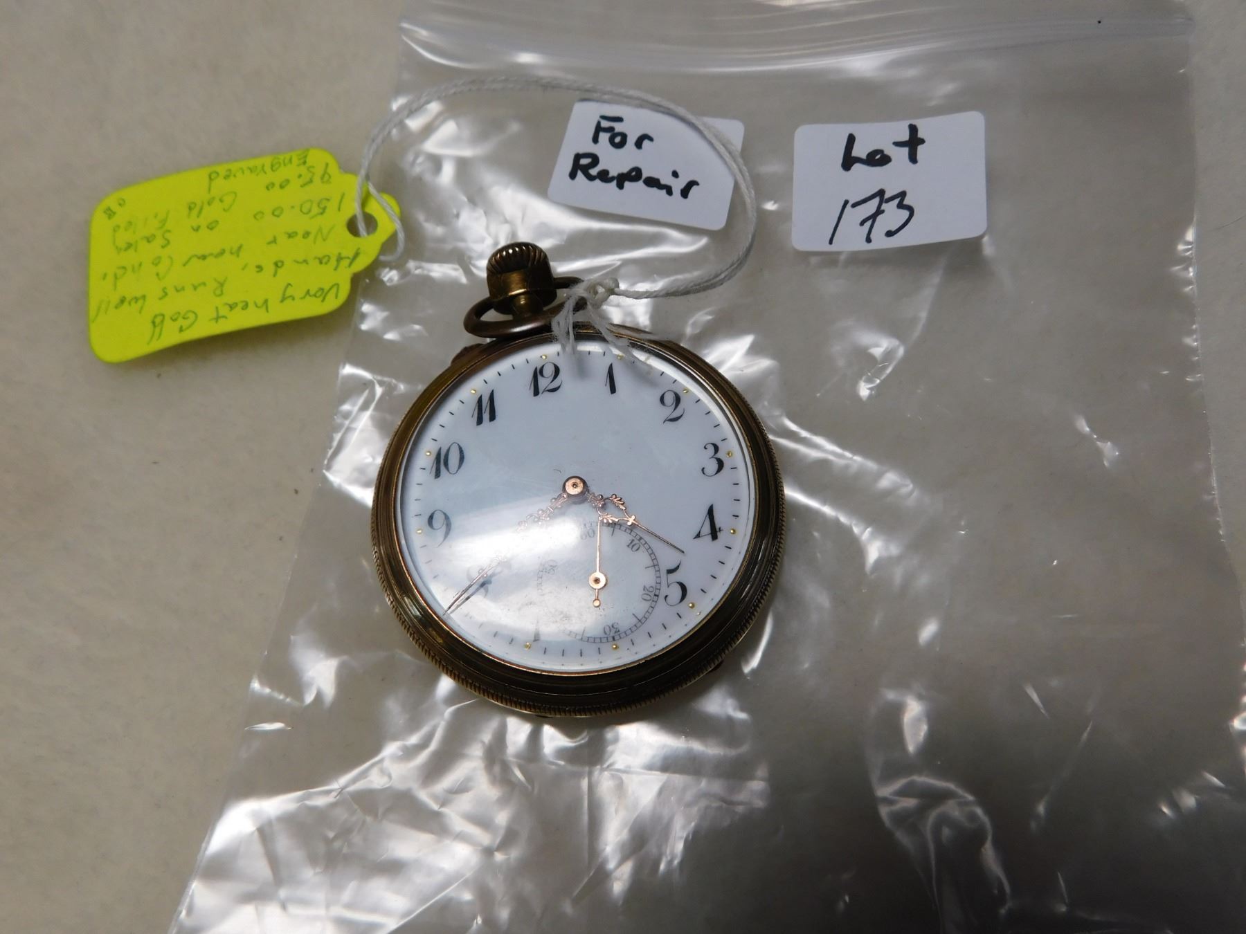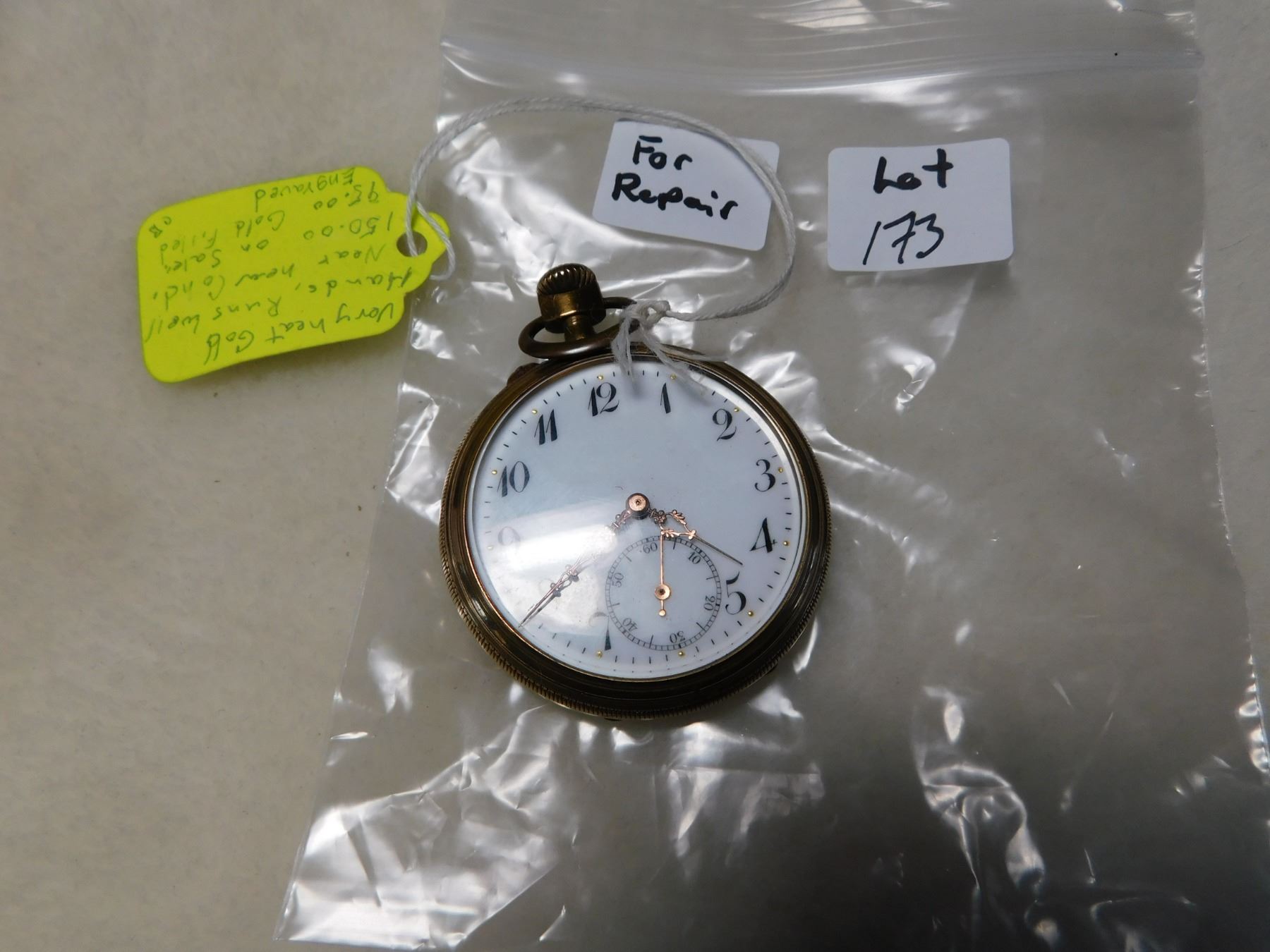 POCKET WATCH GOLD HANDS RUNS