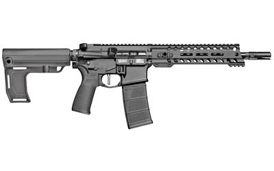 Patriot Ordnance Factory, Minuteman, Semi-automatic Pistol, 556NATO, 10.5" Barrel, 9" Renegade Rail, Carbine Length Low Pro DI Gas Block, Aluminum Frame, Anodized Black, 30 Rounds, SB Tactical SBA3 Brace