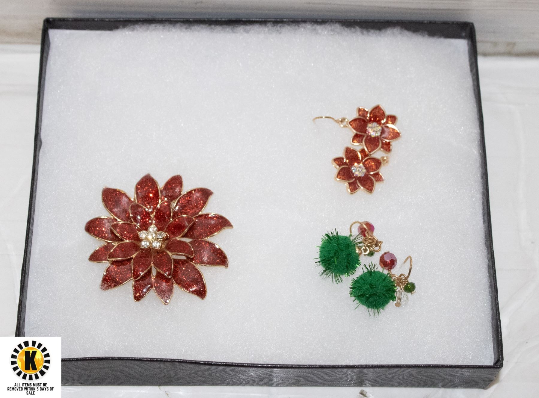 POINSETTIA BROOCH & EARRINGS & EARRINGS
