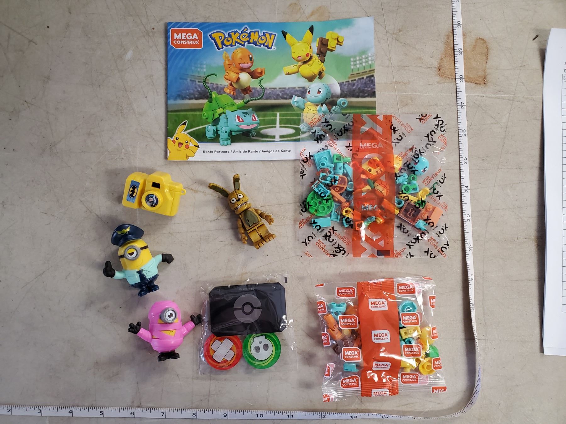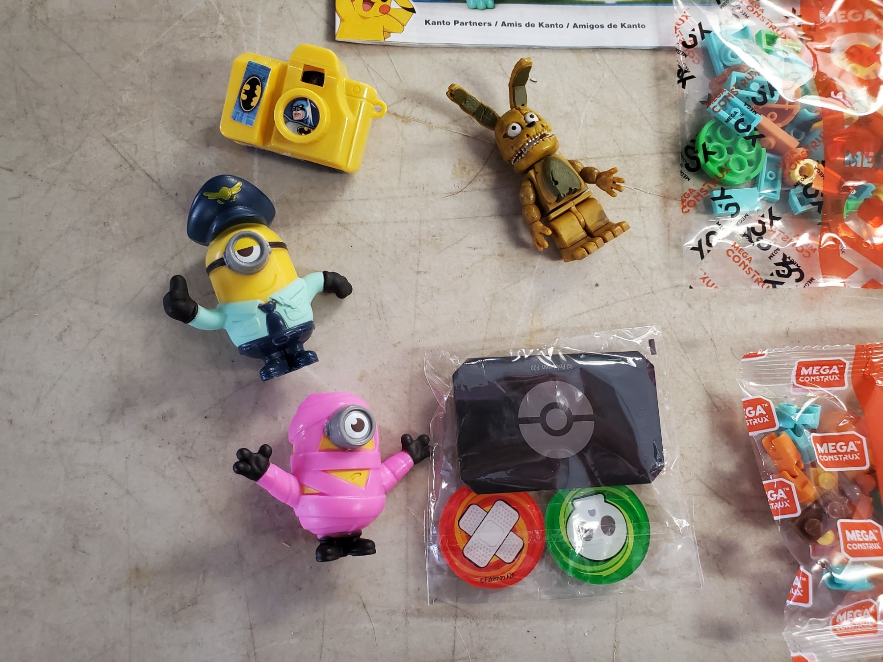 POKEMON MEGA CONTRUX W/ MINIONS, BATMAN CAMERA, & FNAF SPRINGTRAP FIGURES