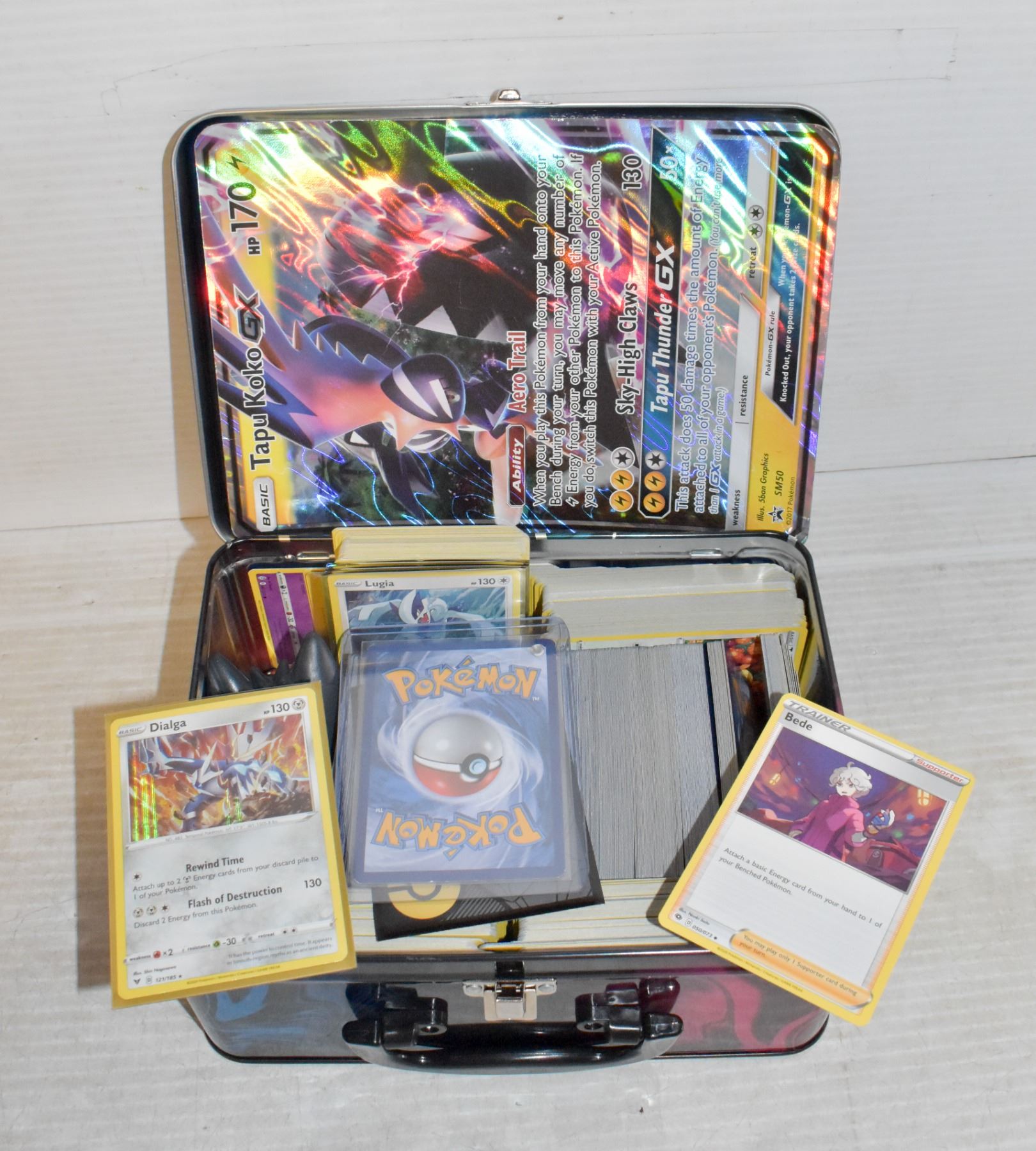 POKEMON TIN WITH POKEMON CARDS, JUMBO CARD