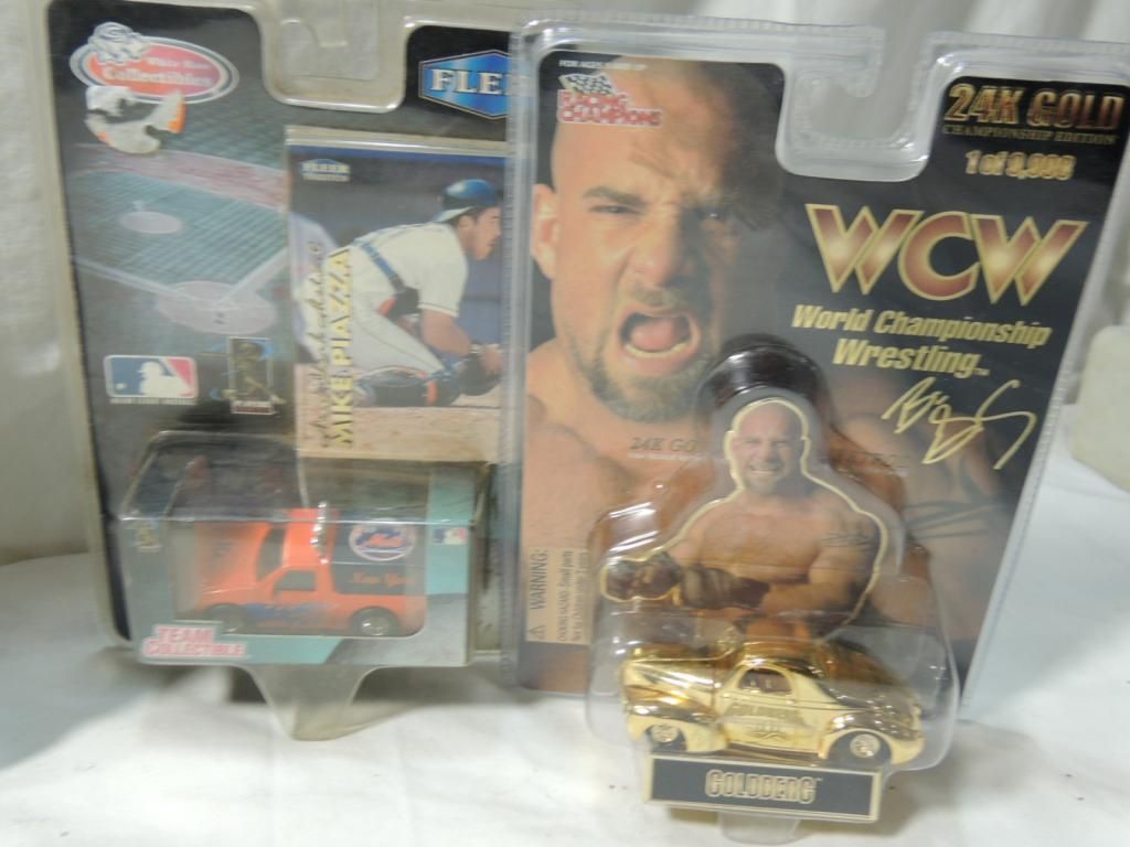 WHITE ROSE COLLECTIBLE FLEER MIKE PIAZZA CAR. WCW 24KT GOLD. GOLDBERG TRUCK. POKEMON TRADING CARDS. AS SHOWN SEE PHOTO FOR MORE DETAILS.