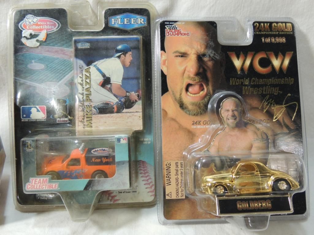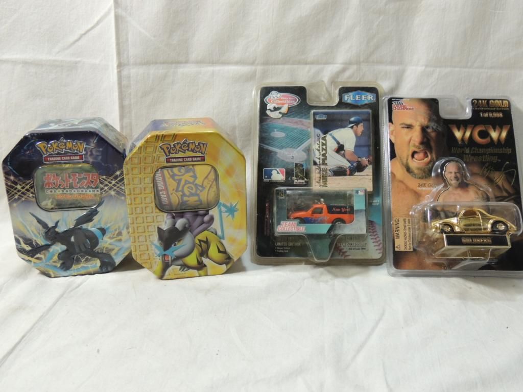 WHITE ROSE COLLECTIBLE FLEER MIKE PIAZZA CAR. WCW 24KT GOLD. GOLDBERG TRUCK. POKEMON TRADING CARDS. AS SHOWN SEE PHOTO FOR MORE DETAILS.
