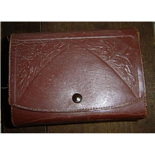 DURING W.W.2, GAMES LIKE THIS WERE MADE IN COMPACT, EASY TO CARRY CASES FOR THE CONVIENCE OF OUR U.S. TROOPS. THIS IS A POKER GAME IN A FOLD OUT TOOLED LEATHER CASE WITH TWO LEATHER STRAPS TO HOLD THE CARDS AND A PULL OUT DRAWER FILLED WITH BAKELITE CHIPS. I DO NOT THINK THAT THE CARDS ARE ORIGINAL SINCE THEY ARE NOT SHOWING AS MUCH WEAR AS APPEARS ON THE LEATHER CASE. IT LOOKS AS IF A COUPLE OF RED CHIPS ARE MISING TOO. IT IS REALLY A NICE GAME SET.