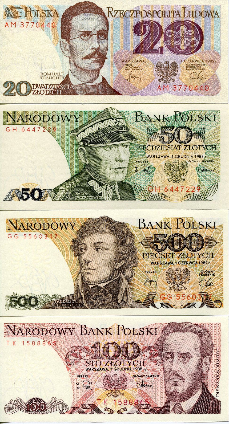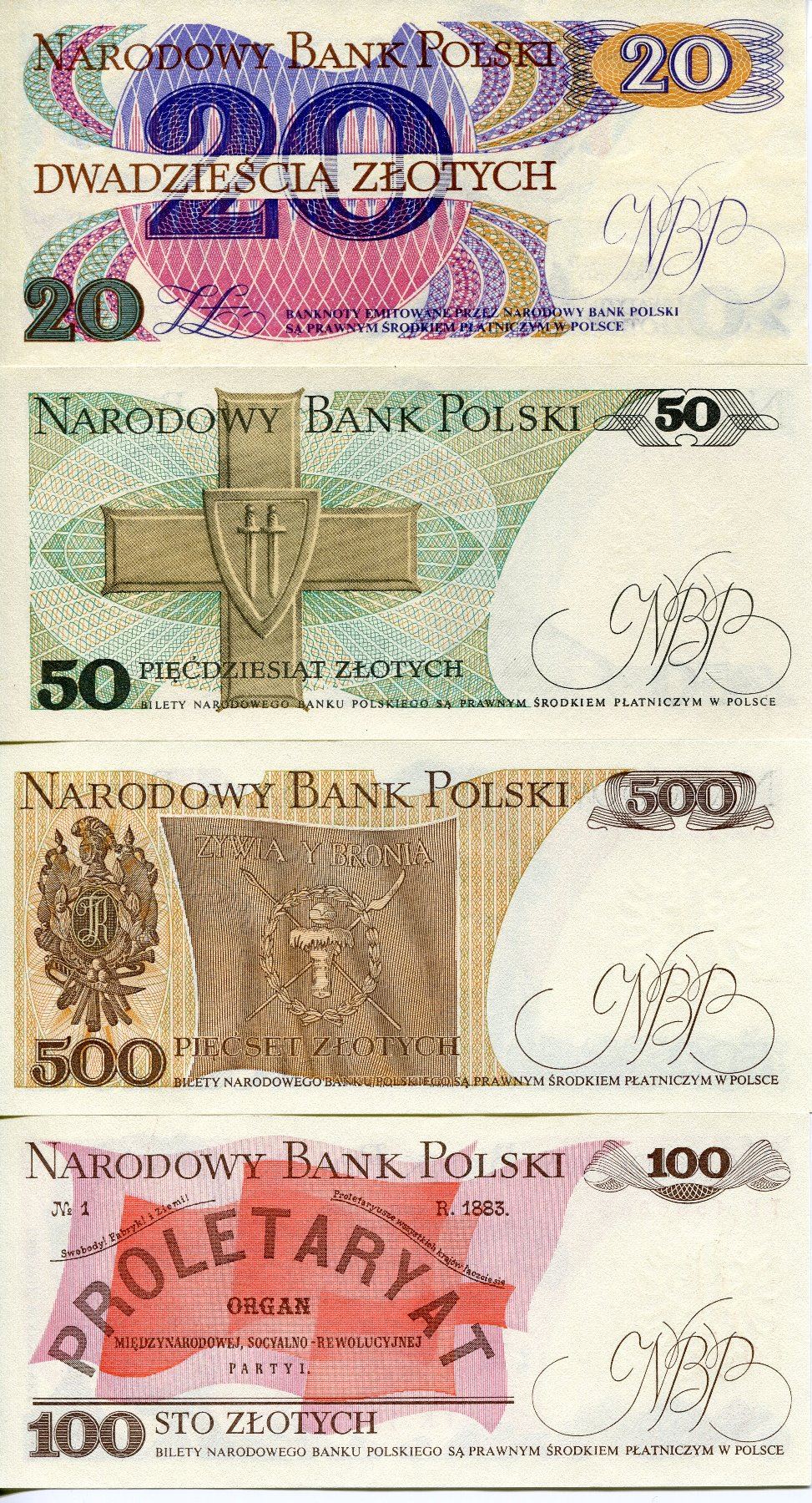 POLAND 4 BANK NOTES KNOWN AS ZLOTYS ISSUED 1980s