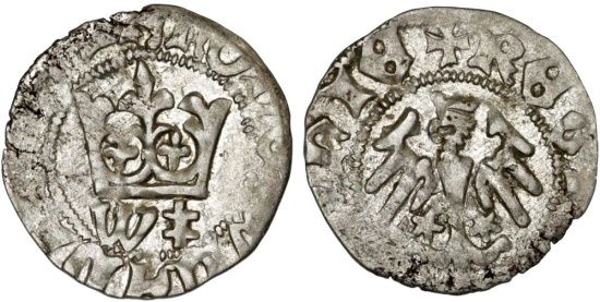 Obv: Crown below: W‡, outer circle legend: MONE WLADISLAI