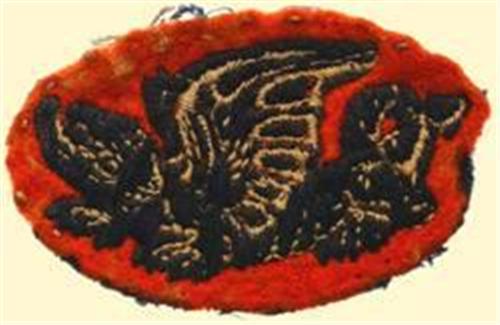 Cloth insignia, orange felt background, black and white embroidered dragon, size ca. 54 x 34 mm.