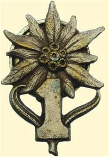 Uniform insignia, edelweiss with "1", tombak silver plated, one part cut out construction with profilestamped
