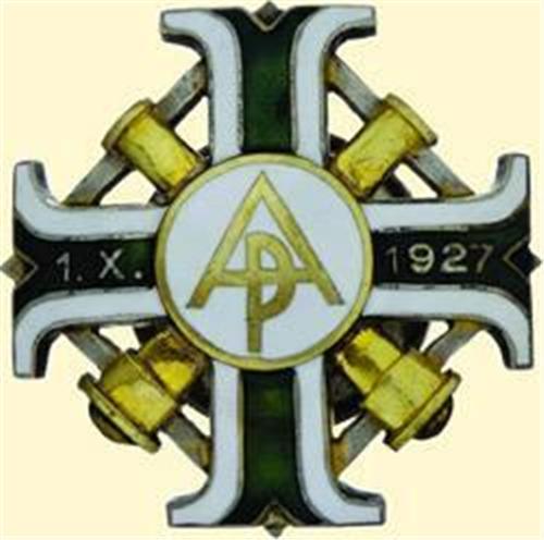 mm; screw on reverse, maker's mark "WL.BUSZEK, Lwow". Very fine design and quality! WES. 505<BR><b>Country:</b> POLAND<BR><b>Type:</b> REGIMENTAL BADGES<BR><b>Group:</b> ARTILLERY REGIMENTAL BADGES